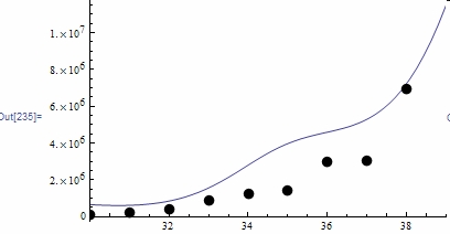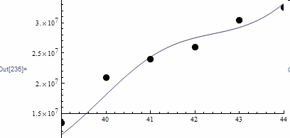 My June 16,2007 forecasting formula, is graphed and mp's are